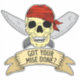 ¿Has terminado tu misión? ¿Qué bien se va tu partida? Un chef gracioso cita a pegatina de un chef pirata con cuchillos de cocina. Perfecto para cocineros jefes y sous, cocineros preparadores y aprendices