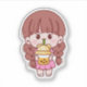 Un personaje kawaii adorable, al estilo personalizado, que presenta a un chica con los cócteles pigtails marrones, vestido con un vestido rosado y gafas, sosteniendo una bebida amarilla del té de burbujas con un diseño de cara sonriente. El personaje promueve un alegre y motivador tema de #PositiveVibes con el mensaje "Brilla a tu manera cada día". El texto adicional juguetón de la cultura japonesa incluye expresiones de diversión y amistad.