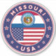 Diseño de Misuri con bandera de Misuri y bandera de Estados Unidos, en forma redondeada. Pegatina de Missouri, pegatina de equipaje de Misuri, pegatina de viajes de Misuri,