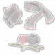 Pegatinas grises y rojos de mitones, hilos de cicatrices y agujas de punto. Pegatinas amables para artesanos.