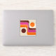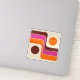 A dynamic abstract composition featuring two bold circles—one orange, one dark brown—linked by three flowing bands in orange, pink, and brown. Each stripe is bordered by crisp lines, curving gracefully across a soft beige background. The interplay of shape and color evokes 1970s graphic design, balancing visual rhythm with sculptural simplicity. The result is a harmonious, retro-inspired piece that captures motion, contrast, and editorial clarity.