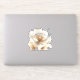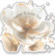 A gorgeous minimalist white and gold color wedding sticker with the name of the bride and groom, and wedding date.
