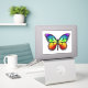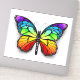 Mariposa monarca realista en todos los colores del arco iris sobre un fondo blanco. Mariposa arcoiris.
