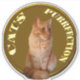 En la imagen de una moneda de oro aparece un gato jengibre con las palabras purrfección de gatos alrededor del gato