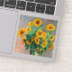 Pegatina con la pintura al óleo de Claude Monet, Bouquet of Sunflowers (1881). Hermosos girasoles en un jarrón azul sobre una mesa roja. Un gran regalo para los aficionados al impresionismo y al arte francés.