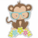 Pegatina Mono Hipster, Mono Con Gafas, Flores
