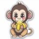 Pegatina Mono lindo bebé con su banana favorita para la com