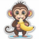 Pegatina Mono lindo bebé con su banana favorita para la com