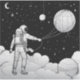 Pegatina Monochrome Astronaut Holding Balloon Planet