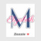 Este pegatina de monograma preppy presenta su elección inicial en azul marino clásico y su nombre en rosa ondulado.