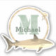 Pegatina Monograma de acuarela verde, nombre y tiburón sepi