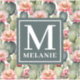 Pegatina Monograma de Flores rosas del patrón Cactus