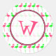 Pegatina monograma con un patrón de fondo de flamencos rosas y verdes. Personalice con la letra de su marco inicial en forma de círculo de enlucido con un guarnecido rosado. Busque elementos que coincidan, como invitaciones, papel y carpetas en la categoría "Flamingo" de la tienda "Pink Schoolhouse".