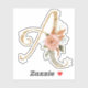 Pegatina Monograma Inicial A Purpurina Oro Peony Rosa Flora