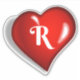 Monograma R, texto blanco sobre el corazón rojo rubí