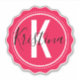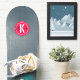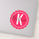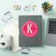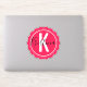 pegatina llamativo personalizado con su inicial única y su nombre en un fondo rosado caliente.