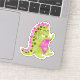 Un extraño dinosaurio como un monstruo verde y rosa con picos graciosos colmillos. ¡Un favor ideal para ir a bolsas de favores para fiestas con temas de monstruo o halloween!