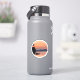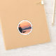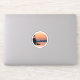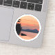 Este pegatina representa una hermosa puesta de sol con una montaña que domina un lago.