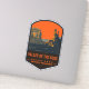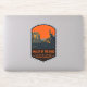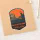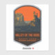 Monumento Nacional de Osos de Oso Diseño vintage de insignias de viaje de mesas, buttes y torres en el Valle de los Dioses, anteriormente parte del Monumento Nacional de Osos de Oso, ubicado al norte del Valle del Monumento cerca de Bluff, Utah.
