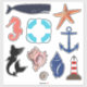 Pegatinas costeros náuticos de diversas formas, como ballena, sirena, pez estrella y conchas marinas.