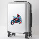 Hombre con chaqueta de cuero montando una motocicleta clásica. Pose dinámica, colores atrevidos y un fondo divertido transmiten libertad, aventura y estilo listo para la calle.