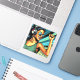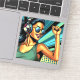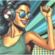 Chica de arte pop bailando música con auriculares hechos en un arte pop de tipo libro de historietas.