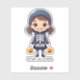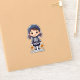 Este es un lindo y personalizable pegatina de Halloween que presenta a una niñita con un disfraz de Halloween parecido a un esqueleto. Puede personalizar el texto predeterminado "truco o tratamiento".