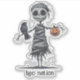 Este es un lindo pegatina de Halloween que presenta un espantapájaros de momia con un cuervo y una calabaza en los brazos. Se puede personalizar el texto predeterminado "nación fantasma".
