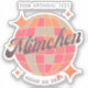 München Munich Minga Deutschland Retro Vintage Design incluye una bola de disco en tonos marrón claro, rosa y azul claro. Este pegatina es un bello elemento decorativo, recuerdo o accesorio para los residentes de la ciudad de München, visitantes, turistas o aficionados.