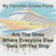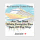 A Sticker with the illustration of a cruise ship in port with the words "My Favorite Cruise Ports Are The Ones Where Everyone Else Gets Off The Ship" printed in black letters over the image.