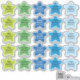 25 Niedliche wasserfeste konturgeschnittene Vinylaufkleber für Kinder. Niedliche Sterne mit kleinen Pünktchen in grün und blau.