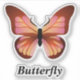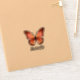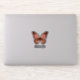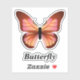 Este pegatina decorativo presenta una mariposa gráfica en tonos naranja y rosa con un cuerpo negro y un texto de plantilla que es fácil de personalizar.
