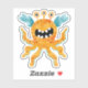 Pegatina Naranja divertida Monstruo de tres ojos con tentác