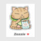 Un gato bebé amarillo gordo con el tema del trébol, bandana, comiendo sus galletas favoritas, sosteniendo un frasco de galletas. Un ilustracion de gatos delicioso y lindo para los amantes de los gatos.