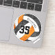Este pegatina de voleibol negro, naranja y blanco presenta un patrón caleidoscópico floral mezclado con los paneles de voleibol negro y naranja y un patrón de giro artístico abstracto mezclado con los paneles blancos - su nombre y número jersey son personalizables - de katz_d_zynes