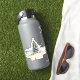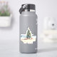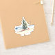 Esta pegatina navideña inspirada en la costa presenta un árbol de Navidad decorado en la playa. Personaliza el texto de Feliz Navidad con tu propio saludo de vacaciones.