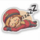 Un soldado de juguete Navidad duerme donde lo dejaron tirado en el suelo. Lleva un uniforme rojo, negro y dorado y un gorra sobre su pelo rojo.