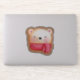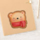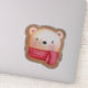 Pegatina de contorno con una cara de oso adorable sobre una base de galletas. Llevando una bufanda de rayas rojas y blancas.