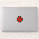 Un pegatina de contorno de una poinsettia de Navidades rojos profundos con hojas verdes profundas. Este es un gráfico original creado digitalmente por Dogwood y Thistle. Estos pegatinas de contorno tienen un aspecto de corte y sólo tienen un pequeño área de guarnecido que sigue el contorno del diseño.
