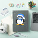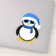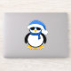 Único pegatina personalizado para la decoración, artesanías, celebraciones.. Ilustracion lindo de pingüino blanco y negro con sombrero de Santa azul, lentes de sol y bufanda. Navidad, navidades, lindo, adorable, para+niños, festividades, vacaciones, animal, pingüino, pájaro, ilustracion