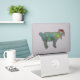 Graciosa y divertida cabra de color usando un sombrero de Santa. Extravagante humor de arte animal de granja para deleitar a tus amigos y familia. Cabra festiva con un patrón verde azulado de arte original de la artista Catherine Sweetman
