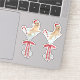 Este pegatina cuenta con un retrato acuático de un perro dachshund rubio de pelo largo sentado en un vaso de martini con un bastón de caramelo usando un sombrero de santa.