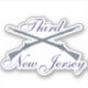 ¡Los mosquetes cruzados básicos y el logo del Tercer New Jersey finalmente en forma pegatina! ¡Ideal para botellas de agua, laptops, auto, gato favorito, cualquier cosa!