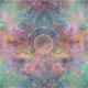 Esta obra de arte tiene una moda de boho y un aire de ensueño, con un fantástico diseño de manala tribal de oro floral situado sobre una bella acuarela de color Orion nebulosa y fondo de estrellas. El diseño presenta elementos aztecos y místicos, el universo y la naturaleza.