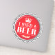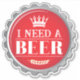 ¡Humorístico bebedor de cerveza pegatina de un gorro rojo de botella de cerveza y la frase necesito una cerveza!