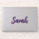 Crea tu propio pegatina portátil personalizado o monogramado. Personalizar el color y el tamaño del estilo del guión de caligrafía manuscrita en negrita según sea necesario para su nombre. Cambia el color de texto púrpura real a tu favorito. Con este tipo de letra, algunas letras están suficientemente separadas entre sí como para que el sistema cree automáticamente dos o más pegatinas en lugar de uno que corta pegatina para su nombre. Si necesita ayuda para arreglar esto, envíe una carta al creador. Para corregirlo usted mismo, agregue texto con letras individuales o sílabas y, a continuación, mueva manualmente esos elementos más cerca hasta que el contorno amarillo muestre que será un pegatina.