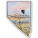 Pegatina con temática de Nevada con "No me acerquen" con una valla desértica abierta a la vía abierta que se dirige hacia la puesta de sol dibujada con tinta negra y acuarela en forma de estado. También puede transferir este diseño a muchos de los otros artículos que Zazzle vende.