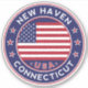 New Britain Connecticut, ciudad de Nueva Bretaña pegatina con bandera de los Estados Unidos, forma redondeada