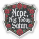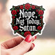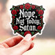 Envía un mensaje claro con esta calcomanía de Ni Hoy Satanás con letras góticas y rosas rojas audaces. Perfecta para laptops, tazas, diarios o incluso tu espejo para un recordatorio diario de mantenerte firme. Impresa en vinilo duradero con un acabado nítido y vibrante que dura. Una divertida calcomanía basada en la fe con actitud — genial para regalar a amigos o quedártela tú mismo. Mantente feroz, mantente fiel.