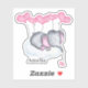 Pegatina vinílico personalizado con diseño de elefantes lindos. Este ilustracion acuático tiene una adorable niña elefante con orejas rosas y dedos de los pies rosas. Ella se está relajando en una nube blanca esponjosa con globos con forma de corazón de amor rosado. La plantilla está preparada para que la personalize con su nombre (o puede dejar el cuadro en blanco si no se requiere texto personalizado). Uber adorables pegatinas de vinilo desmontables, impermeables para sus botellas de agua, decoración de vivero, juguetes y revistas, etc.